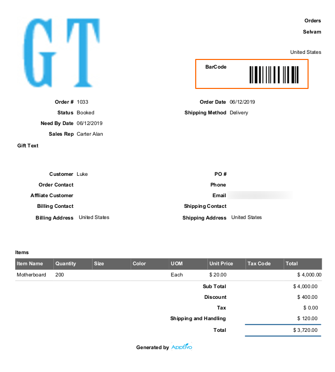 Generating barcode can be used to scan the generated barcode from the printed Purchase Orders or Orders and it would deliver the purchase order or order number to the device that it is connected to. Generating barcode in one of the most awaited features implemented in Apptivo.