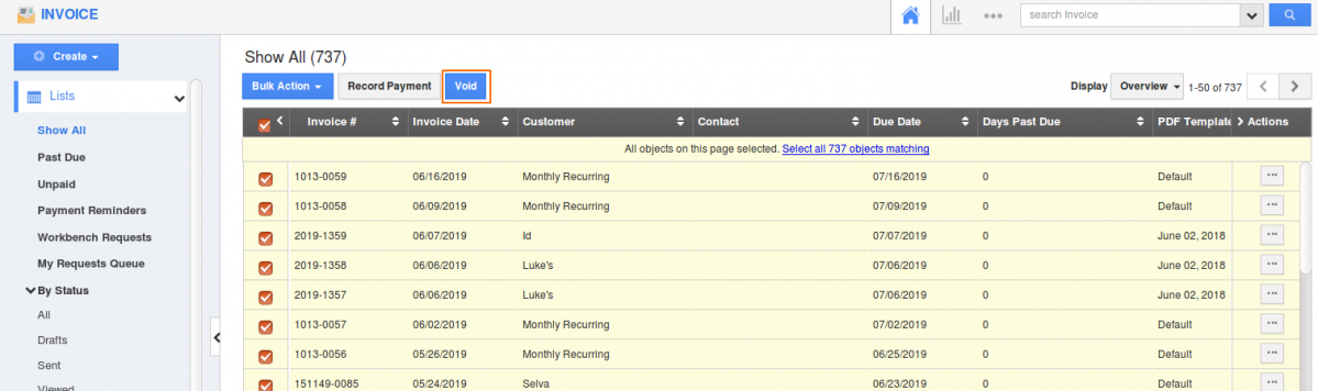 We have implemented the feature of voiding the invoices in bulk. This saves you time and makes it more productive.
